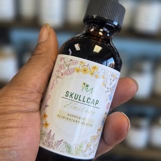 Herb shop offering a large selection of items such as tinctures and supplements, plus crystals.